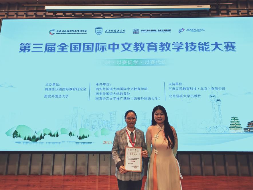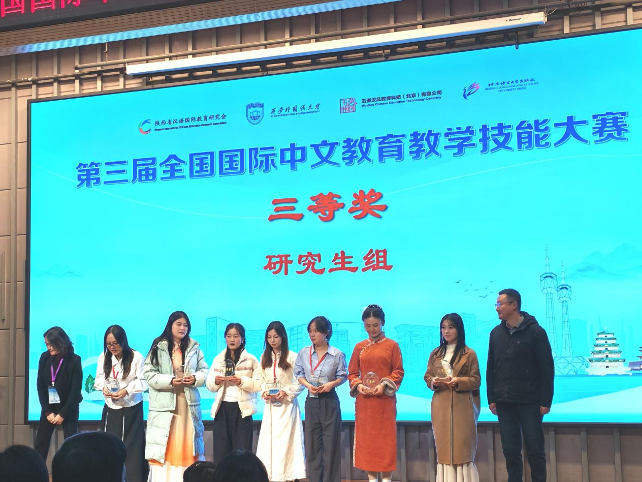 2025 年 11 月 23 日,第三届全国国际中文教育教学技能大赛复赛与决赛在西安圆满落幕。本次大赛由陕西省汉语国际教育研究会与西安外国语大学联合主办,西安外国语大学国际中文教育学部与教务处共同承办,并得到五洲汉风教育科技(北京)有限公司和北京语言大学出版社提供的支持,大赛汇聚了全国多所高校优秀学子同台竞技。