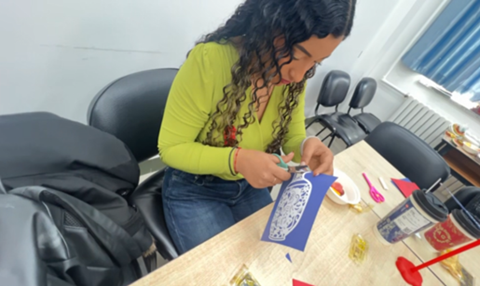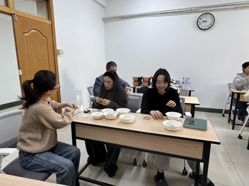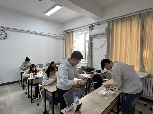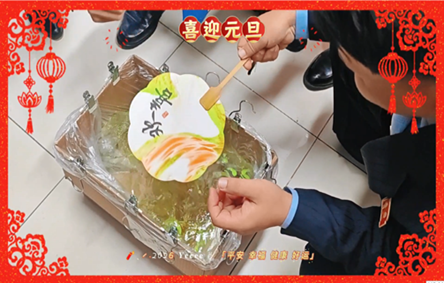 中级一A班的同学们用歌声点亮了跨年夜!男声合唱《龙的传人》铿锵有力,同学们精神饱满,将对新年的无限憧憬与对同窗的深厚情谊尽数融入了豪迈的歌声里。张彧彧老师带领大家沉浸式体验中国非遗手作:拓印“福”字、DIY漆扇。“福”字承载纳福迎祥之意,漆扇融入了中国书法和传统纹样。同学们在动手实践中领略了非遗技艺的精妙绝伦,更在潜移默化中深化了对中华传统文化的理解与热爱。