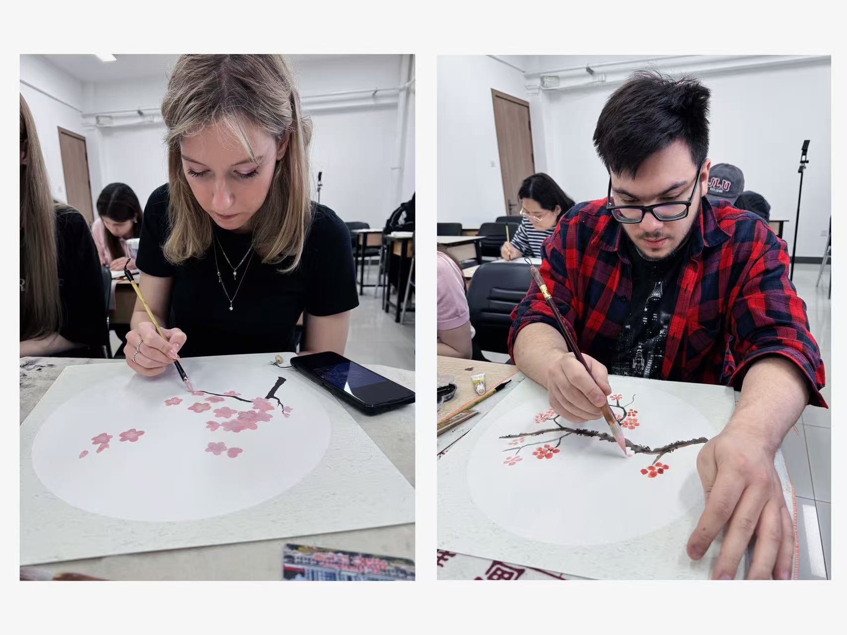 一笔一画传非遗,一瓣一墨促交融。此次中国画体验课上,国际学生不仅习得了中国画基础技法,更在笔墨晕染间触摸到了中国传统文化的深厚魅力,于点画描摹中遥想吉大杏花盛放之姿,为吉大杏花节增添了一抹别样的文化亮色。