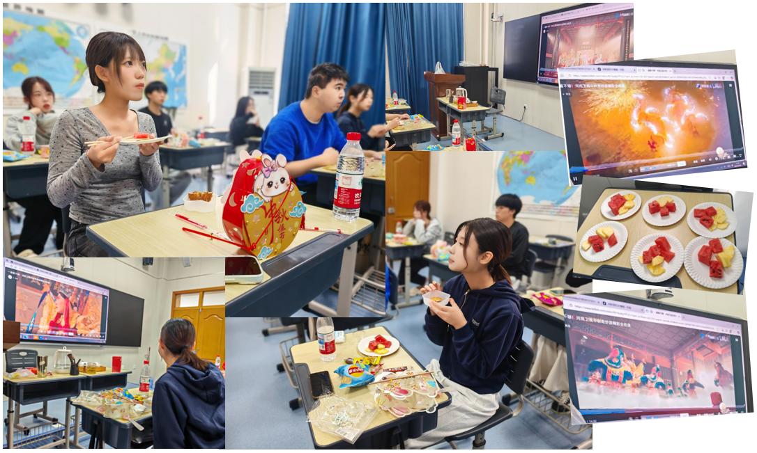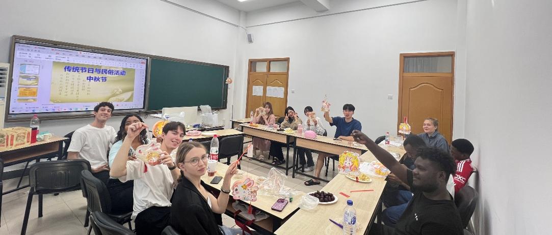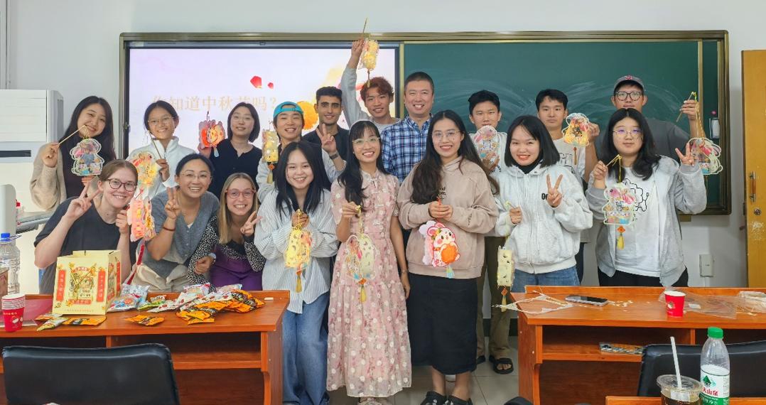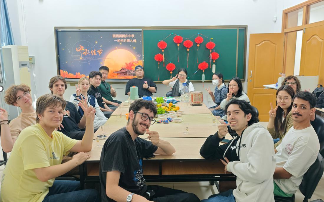 项目班A组围绕中秋文化内涵与传统体验展开。宗圆老师讲解了“嫦娥奔月”“玉兔捣药” 等经典传说,阐释中秋文化内涵,随后指导学生动手制作中秋灯笼,体验创作乐趣,最后师生围坐,一边享用美味的茶点,一边观看河南卫视“中秋奇妙游”节目。通过打铁花、书法、武术、京剧等传统技艺展演,留学生们深切感受到中秋节的温馨氛围与中华传统文化的深厚魅力。